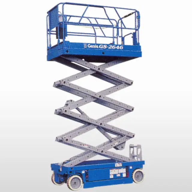 Genie GS2632 With a working height of 9.8m the Genie scissor lift offers capacity to lift two operators and their tools. Only 81cm wide and with a 1.16m stowed height, the GS-2632 is designed to...