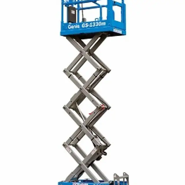 The Genie® GS™-1330m scissor lift is designed for low-level access and space restricted applications. It is equipped with an efficient, all-electric DC drive system that offers productive power for...
