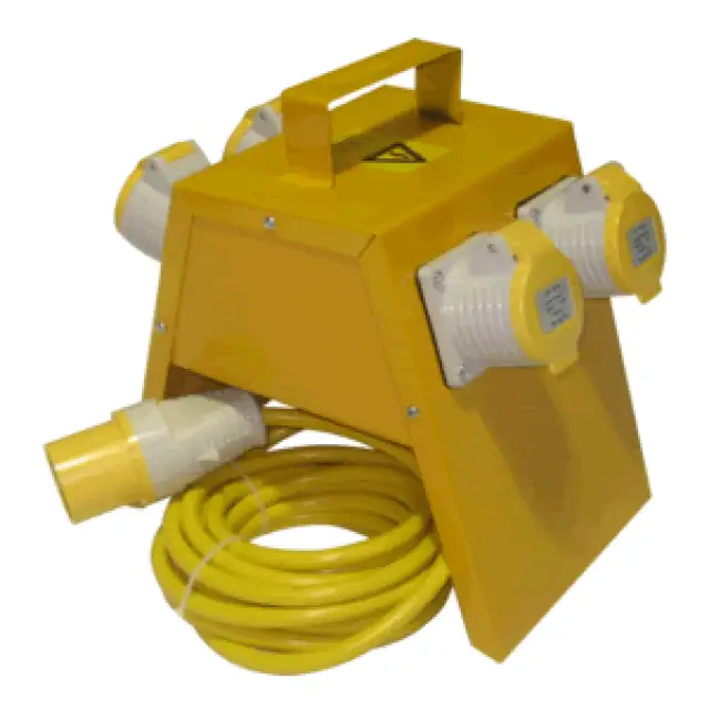 4 way 110v extension outlet box c/w 5m, 2.5mm 3 core arctic grade cable & 16 amp plug.