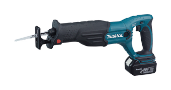 Makita 18v Cordless Shark Saw operates on lithium-ion batteries that have greater life spans than their Ni-MH or Ni-Cad counterparts giving 430% greater run time.