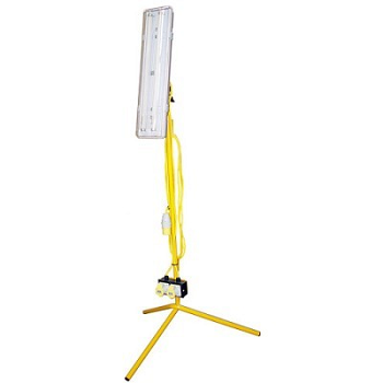 - 5ft 110 volt IP65 weatherproof fluorescent fitting c/w tube and fitted with 5m, 1.5mm cable & 16 amp plug with 2 x 16 amp sockets mounted on base of fixed leg tripod.