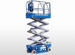The GS1932 is a 19ft scissor lift with the flexibility to work both indoors and outside. It has the same zero inside turning radius and front wheel drive for working in tight spaces as the GS-1930, but is a lighter weight. It is only 2cm wider so it can still pass easily down corridors and through doorways.